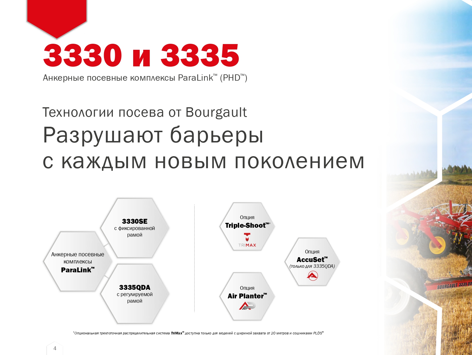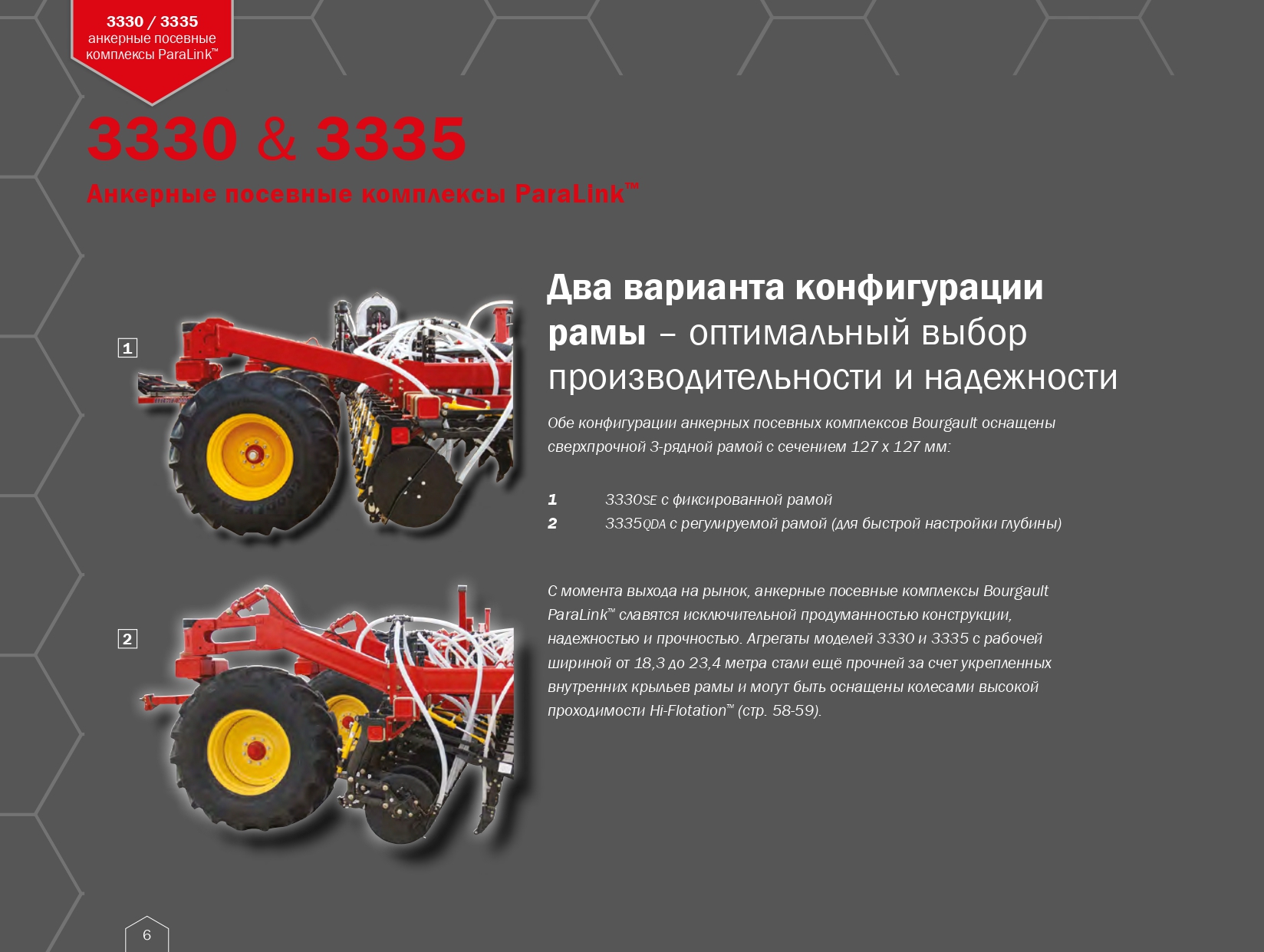 3330 и 3335 представляют собой эффективные и проверенные временем конфигурации для сельхозпроизводителей, требующих надежный посевной агрегат с возможностью независимой настройки глубины на каждом сошнике.Анкерные сеялки 3330 и 3335 доступны в 2 различных конфигурациях для потребностей каждого фермера: