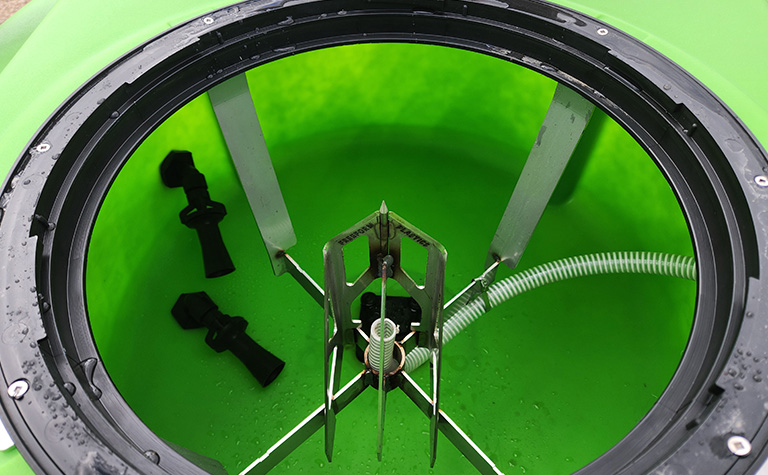 Вращающаяся форсунка обеспечивает быструю и равномерную промывку всего бака Chembine.
