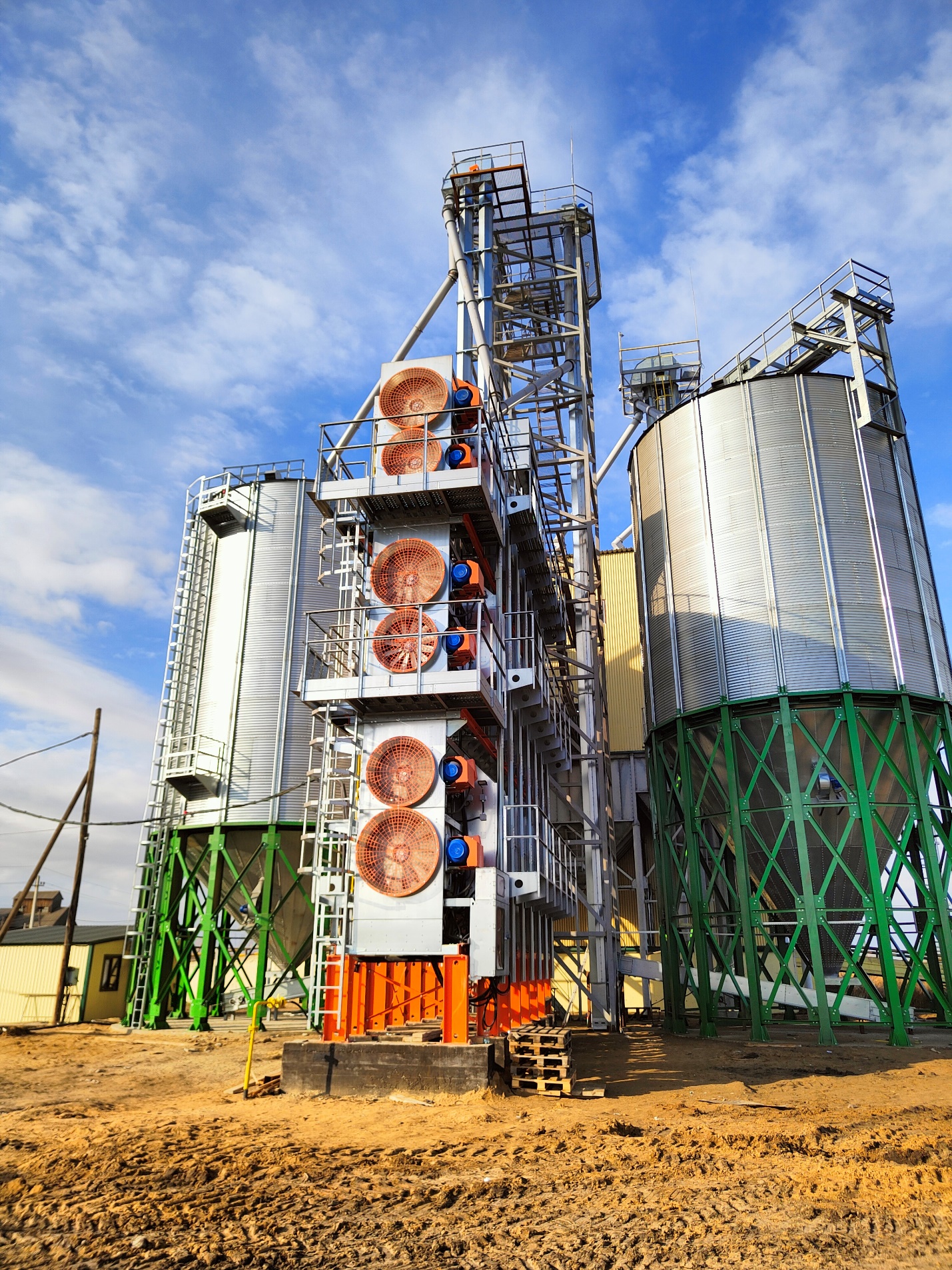 Это возможно благодаря конструкции зерновых колонн, имеющих сбросные лючки, а также, за счет открытой конструкции, которая позволяет визуально наблюдать начало возгорания.